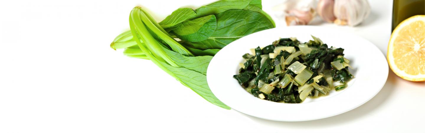 Separate the stems of the greens from the leaves. Cut leaves into strips and set aside. Chop stems into bite-size pieces.
