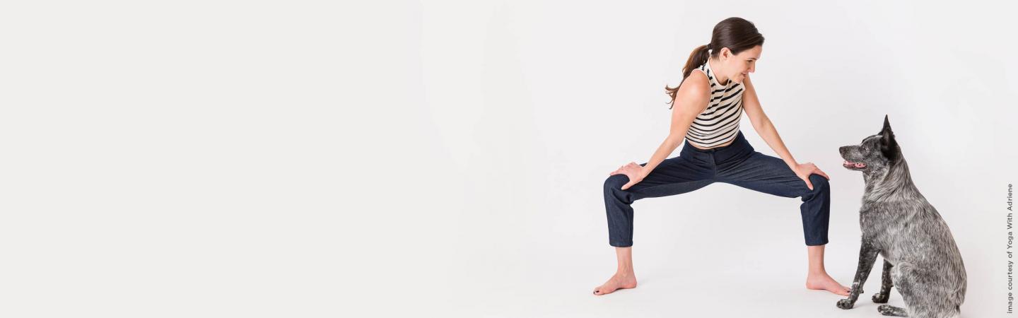 In order to keep her audience coming back, Adriene knows they need more than the possibility that they might achieve the ease she embodies. Enter Benji the dog, a Blue Heeler mix who will sprawl unconcerned on her yoga mat and who seems happy to be used as an occasional prop.