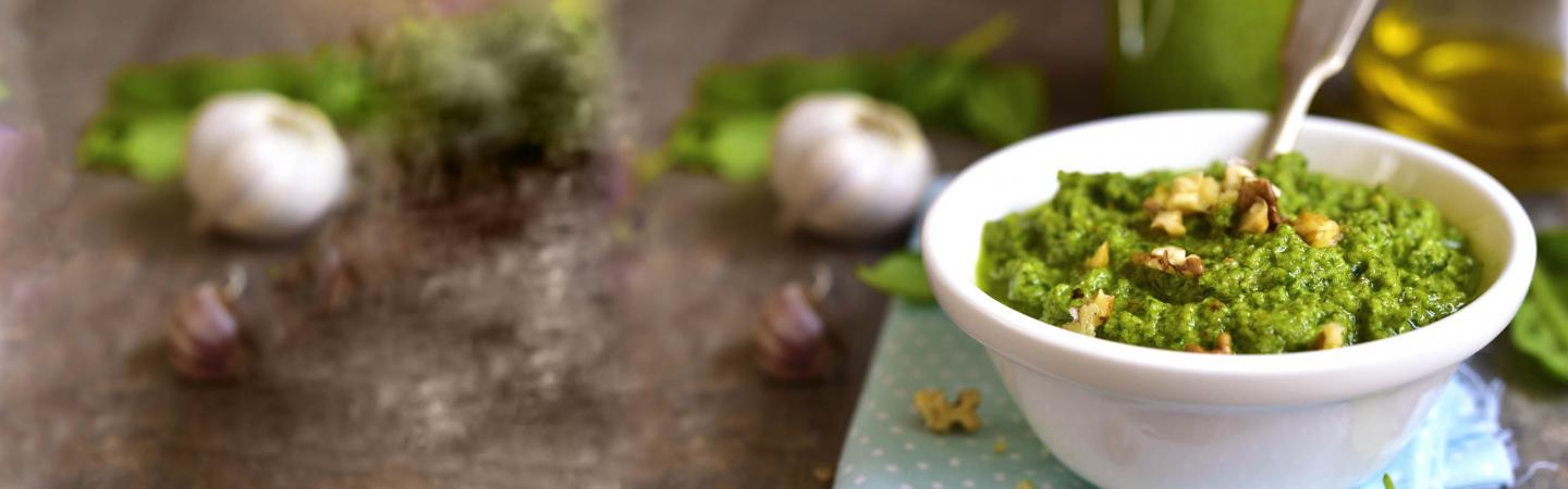 This quick, healthy pesto recipe features good-for-you greens, like spinach and arugula, and healthy fats.