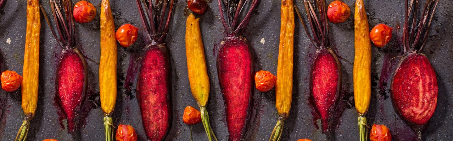 This rich, roasted root vegetable salad featuring beets, onions, and carrots, is a perfect autumn dish full of color and flavor.