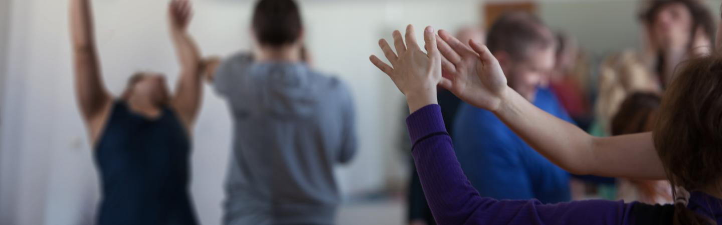 I began to bring all the parts of myself into this creation. I had people roll around on the floor because of my background in contact improv. I added pelvic and spinal work from yoga. The other part of me that had never come to the dance floor was my whole theater life. I had been studying playback theater, psychodrama, and shadow work, and I began to incorporate it. I had already gotten a masters in education at NYU, but now I would teach what I love.