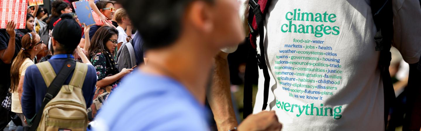 Youth-led climate strikes are taking hold around the world and the OCSL continues to strengthen its commitment to the movement. On September 20, wearing OCSL-themed t-shirts with a "Climate Changes Everything" logo (also available in the Omega Bookstore), OCSL staff joined approximately 60,000 protesters in New York City. A frequent OCSL partner, Sachem HawkStorm, was one of the first to speak at the rally.