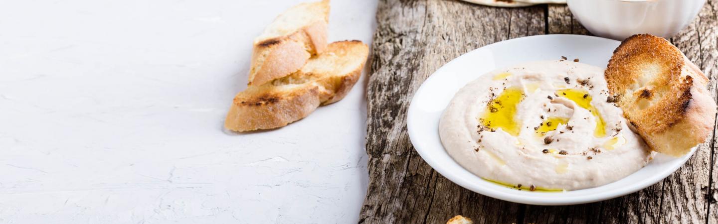 Inspired by memories of dunking chunks of crusty country bread into white bean soup, Omega dining consultant Michel Nischan developed this vegan dip with an intense garlicky flavor tempered by fresh rosemary.