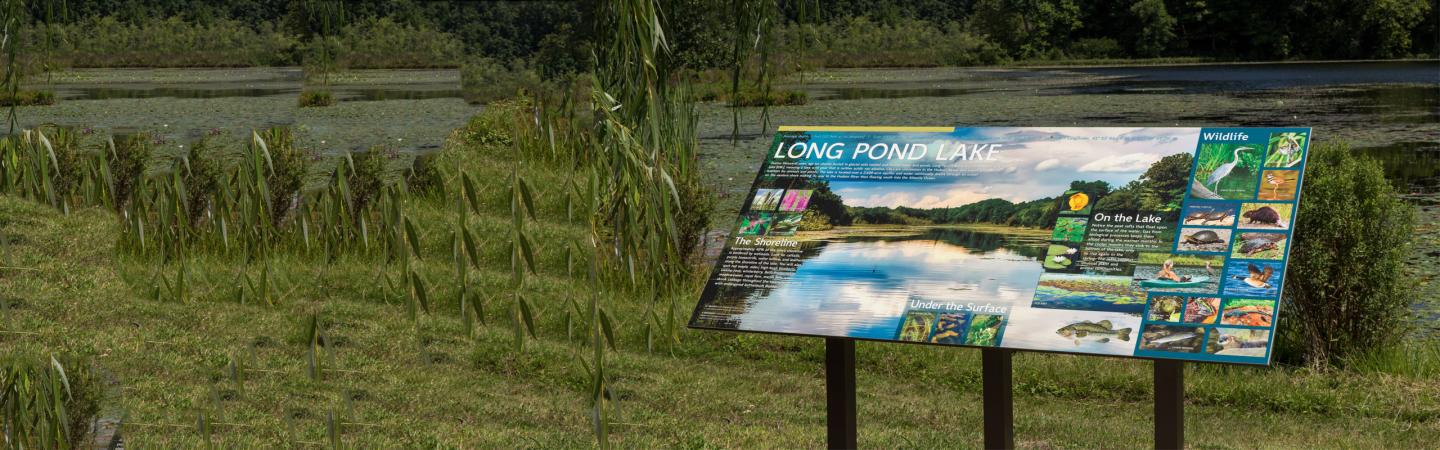 But people aren't the only beings who make use of this natural area. A wide variety of plants and animals make their homes in and around the water. Visitors can now learn something about the lake and its inhabitants from a new sign that sits near the water's edge.