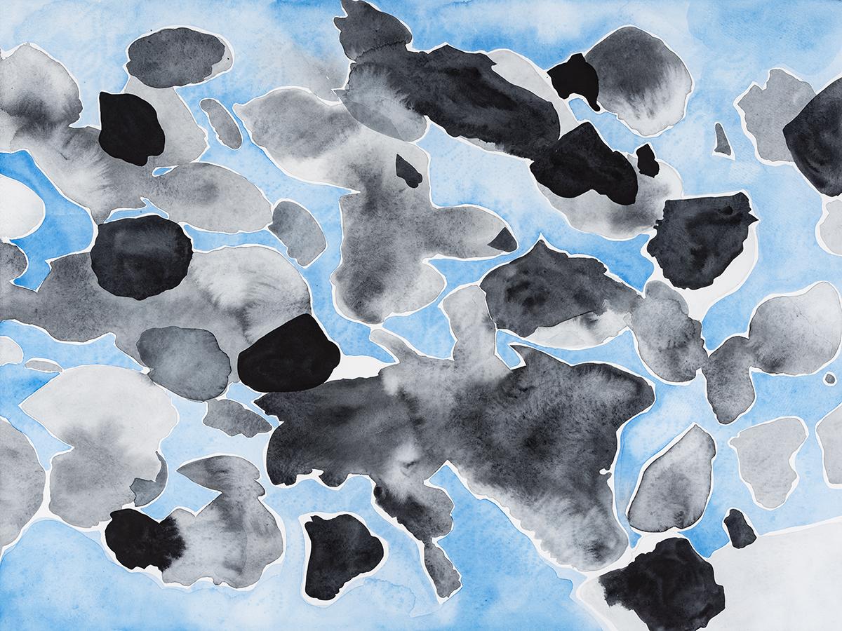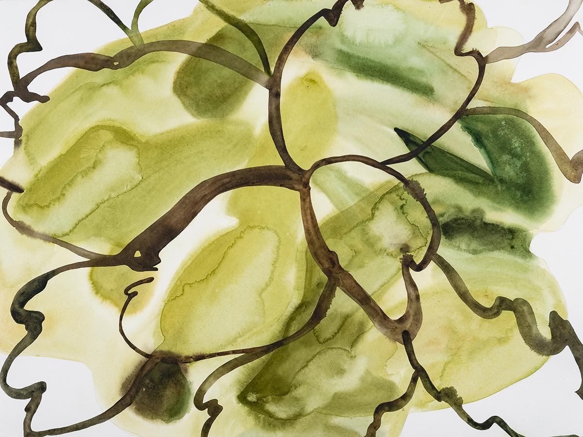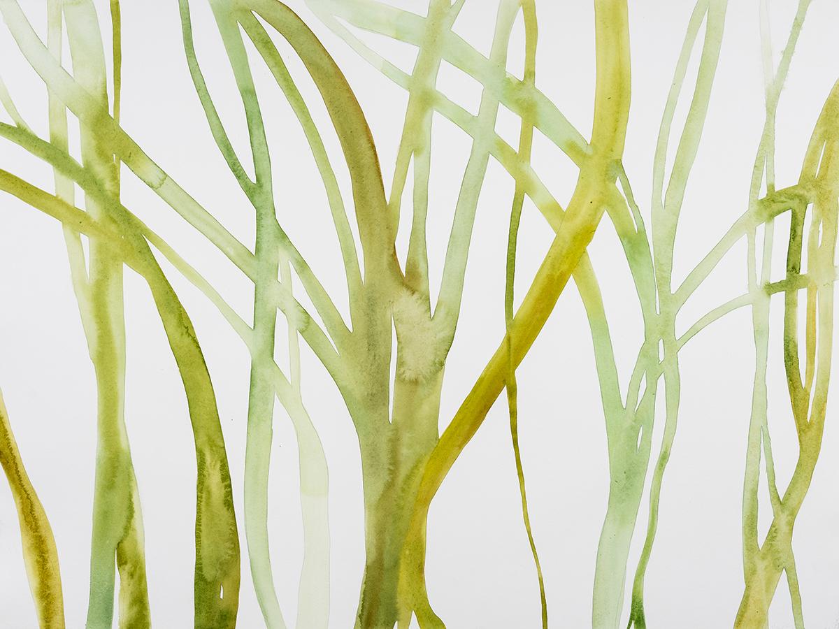 Her medium is watercolor. Translucent and spontaneous, watercolor carries with it a sense of innate freedom. In describing the medium, Garside states “Watercolor has a mind of its own, creating incidents as it pools and dries that are more graceful than I could consciously draw. It’s a unique force, affected by wind, gravity, and temperature.”