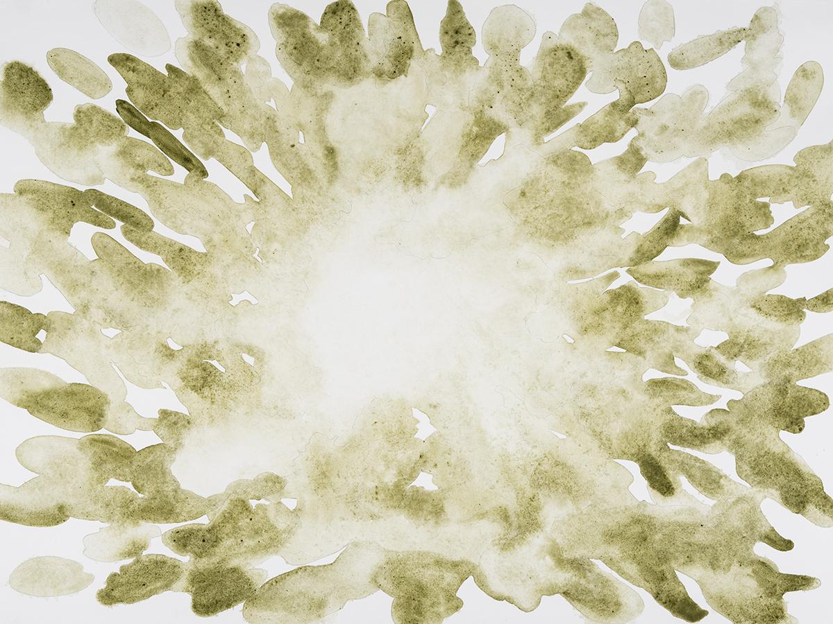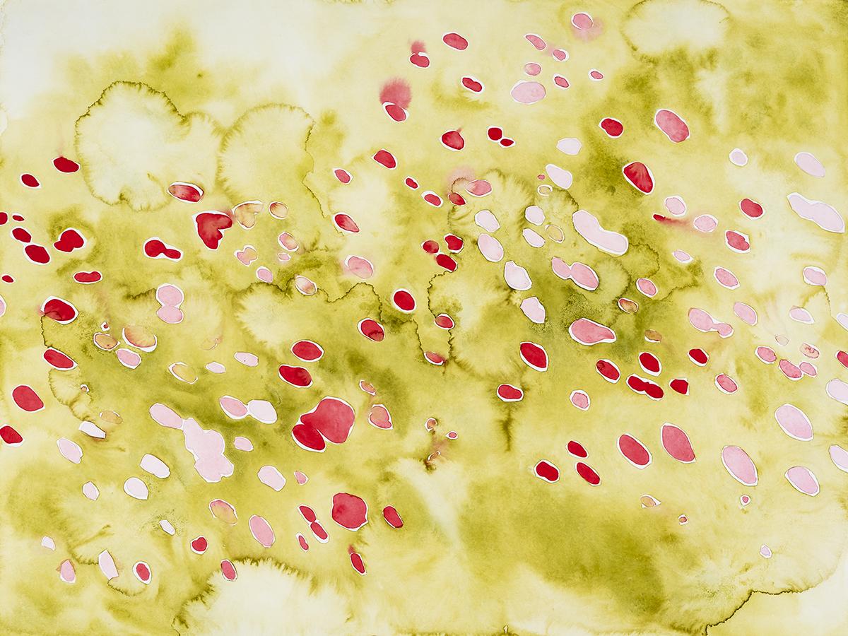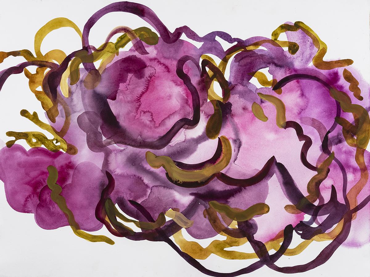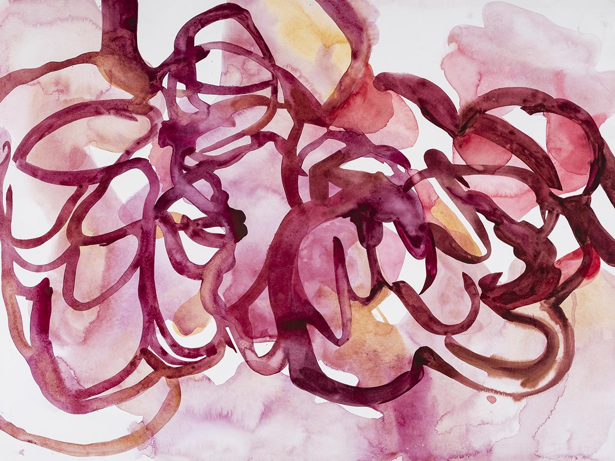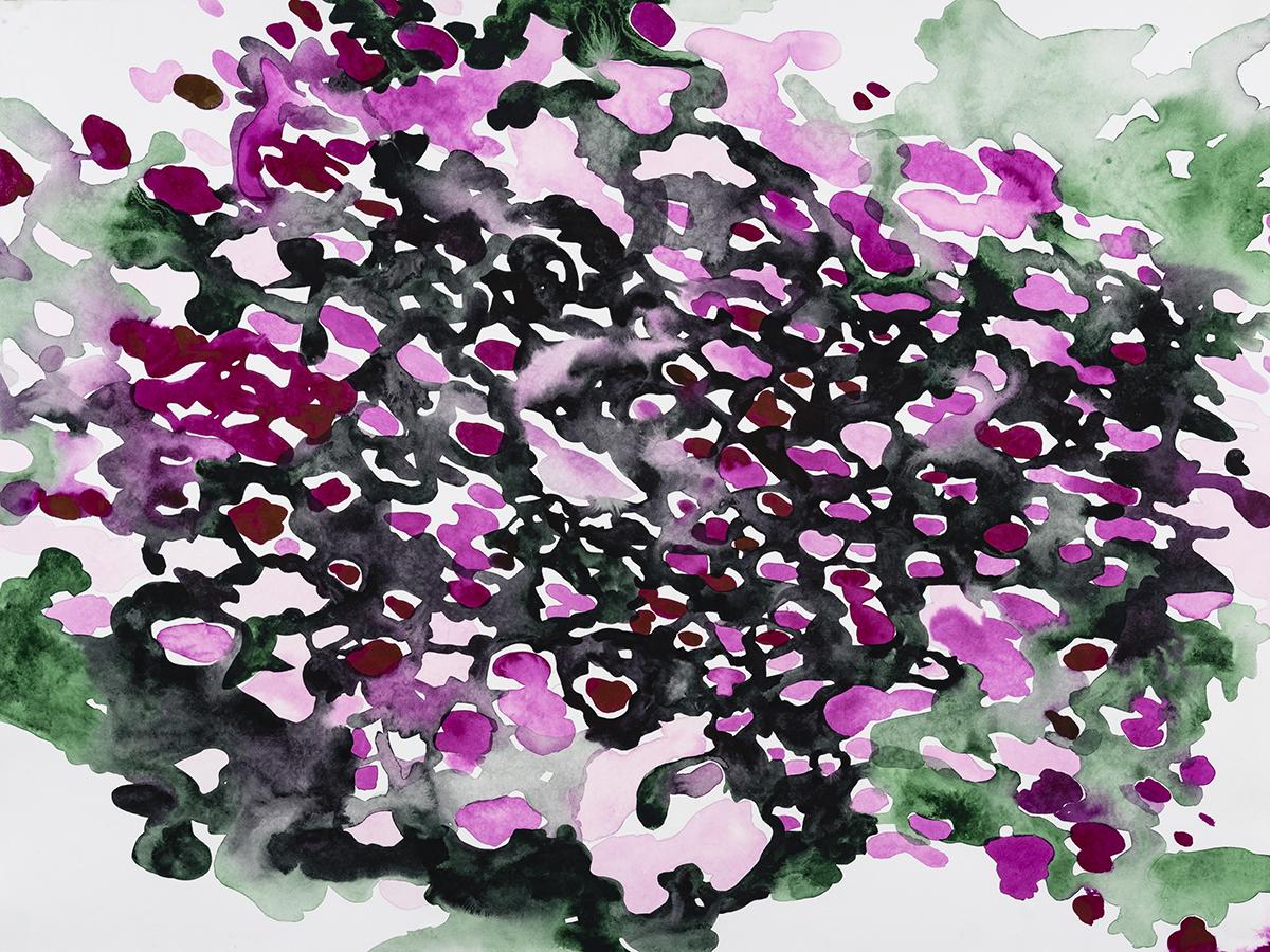 Garside’s large-scale watercolor paintings become spaces — open fields of sensory communication.