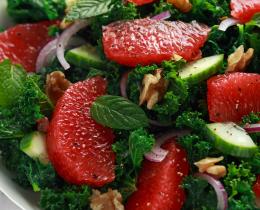 Craving something fresh and green? This seasonal salad with hearty kale and ruby red grapefruit will hit the spot.