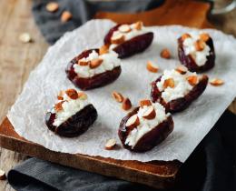 Blend the remaining soaked cashews with the oregano, date (or maple syrup), lemon juice, and water until smooth to make the “feta cheese.”