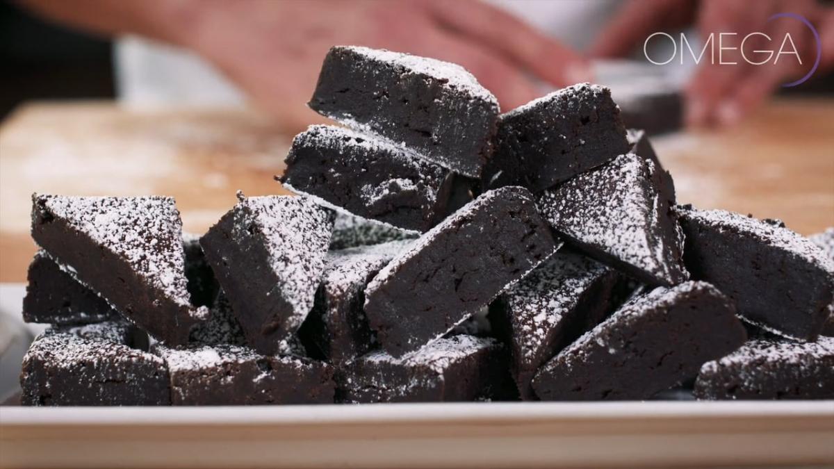 The brownies at the Omega Café are one of our most popular items. This version is a decadent, buttery, chocolatey treat that happens to also be gluten-free.